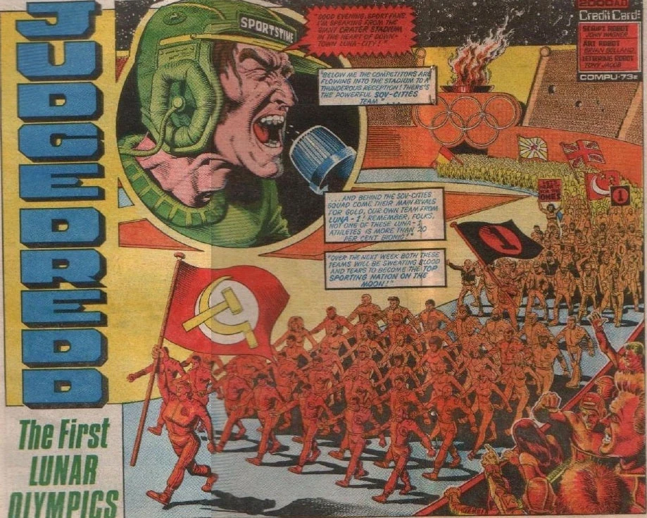 In 2100, the city held the Olympics in Crater Stadium. A Sov athlete was assassinated and the Sov Judge delegate declared war - a formal 'war game' of two opposing teams for territory. Thanks to Dredd, the Luna team won and was awarded some Sov territory in compensation.[11]