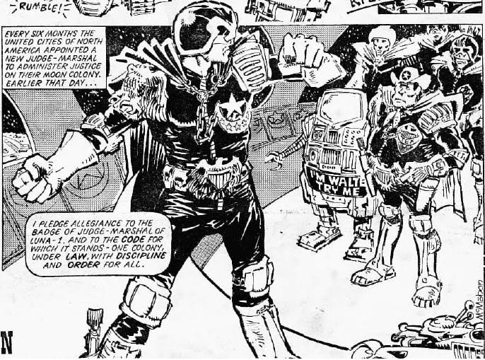 In 2099, Luna-1 was still an expanding frontier with new plots of land being opened to claimants; it strongly resembled the Wild West in many respects. Moonie's control was near-absolute (only the government-run Oxygen Board was as powerful as him), the Judges were failing to keep order, and Judge-Marshal's had a habit of dying on the job. Judge Dredd was appointed Judge-Marshal shortly before Christmas. After several assassination attempts, he stormed Moonie's home and brought him to justice.[10] With the help of Judge Tex, Judge Chico and Judge Ché, he continued to clean up the city.