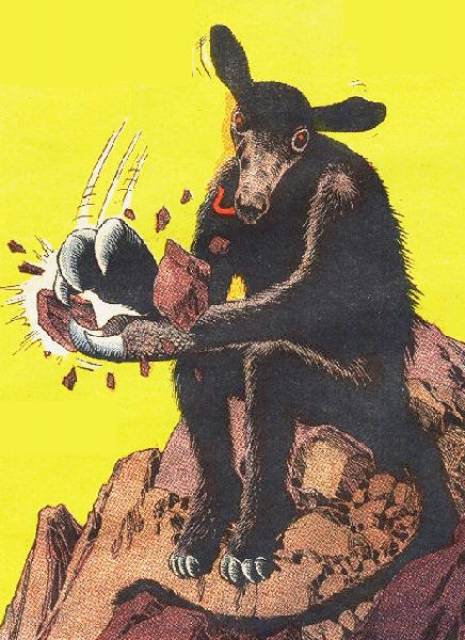 The name of Tweak's home planet nor his species is never actually learned, but it is certain that his kind were intelligent and prosperous. They were almost entirely a mining community and were only able to live off rocks. The idea of eating something that had lived was considered disgusting to Tweak. It is found out in the prog "Tweak's Story" that he was in fact the leader of his planet, and he willingly allowed himself to be taken by humans who had come to their planet looking for anything of value to mine. Using his powers of pre-cognition, he saw how violent and polluting humans may be to their planet, and he ordered all evidence of his species to be hid from the humans as they explored the planet. When his child ignored the order to stay hidden and got caught, though, him and his wife revealed themselves and made every effort to appear as dumb creatures so that the humans would not have the urge to explore the planet further, and so that they would leave his species in peace. Once on Earth, Tweak was sold to one ranch owner, and his family to another. His family were eventually put down after Tweak's child, used as a pet for a plantation owner's daughter, accidentally hurt the girl. Tweak broke out of his bondage to bury them in a rocky grave, the stone providing food for the afterlife, when he was rounded up, beaten, and returned to his servitude. At the time of being discovered by Dredd, Tweak is living as a slave in the Cursed Earth, where any escape attempts are quelled by Slay-Riders, mercenaries who round up and return runaway slaves.